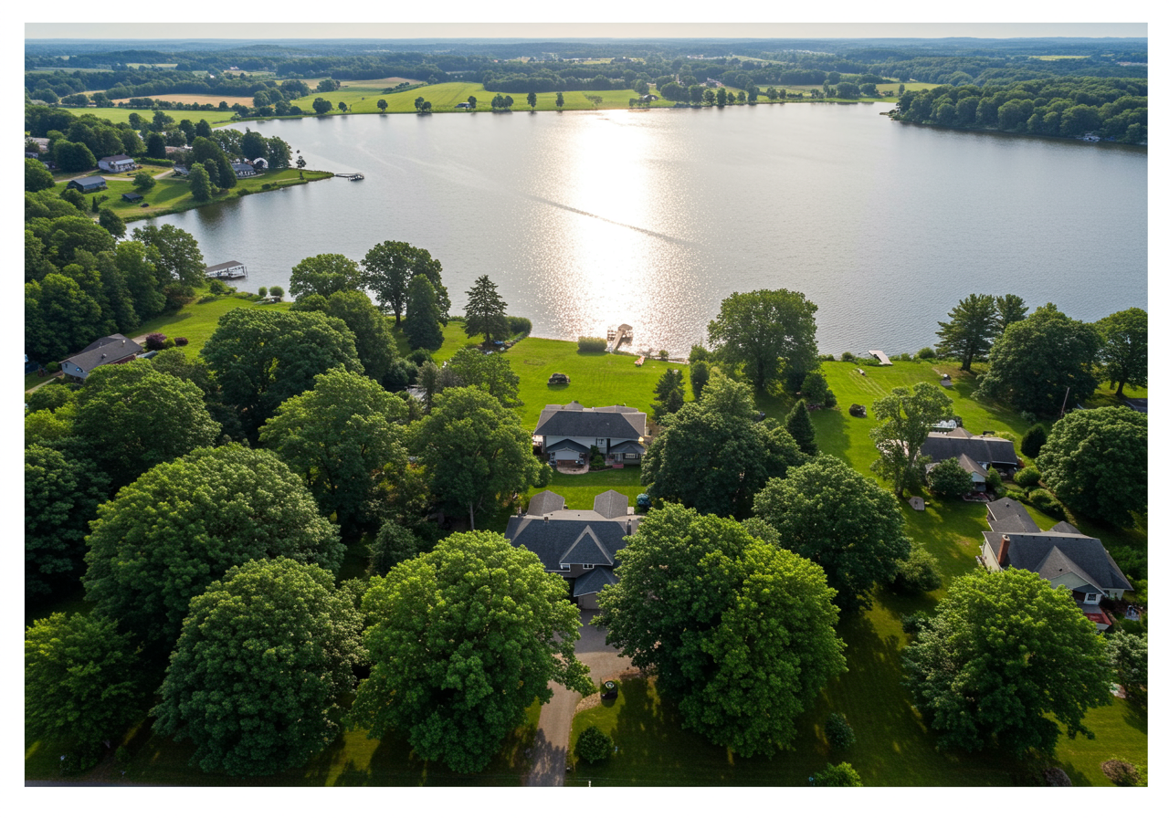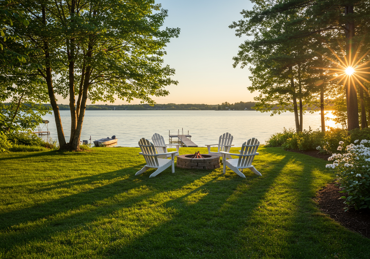 Lakefront properties lie on the waterfront and typically have direct access to the lake.